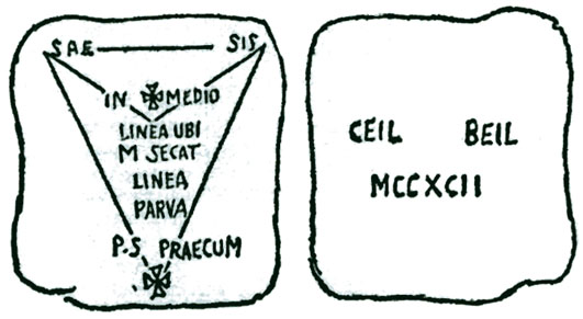 Le dos de la dalle porte les mots CEIL BEIL, qui pris tel que n’ont aucun sens. On peut toutefois